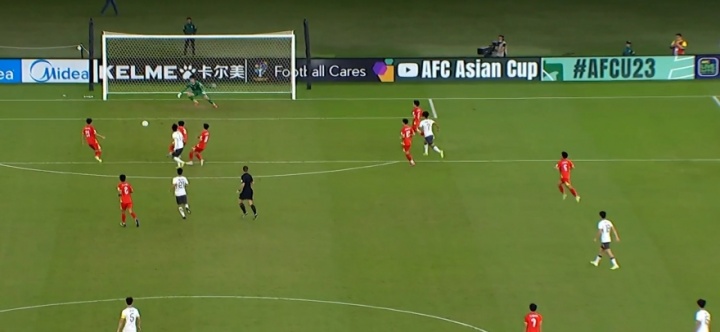 01月21日讯 U23国足vs越南U23第50分钟,U23国足连续配合,蒯纪闻左脚远射稍稍偏出!